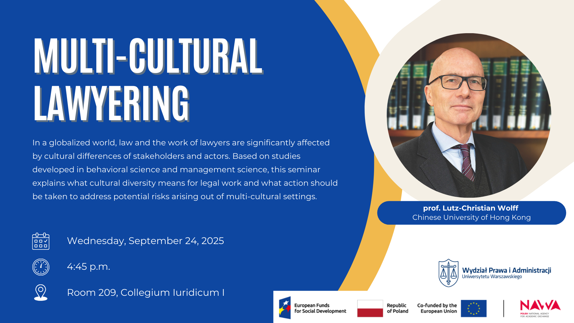 In a globalized world, law and the work of lawyers are significantly affected by cultural differences of stakeholders and actors. Based on studies developed in behavioral science and management science, this seminar explains what cultural diversity means for legal work and what action should be taken to address potential risks arising out of multi-cultural settings.