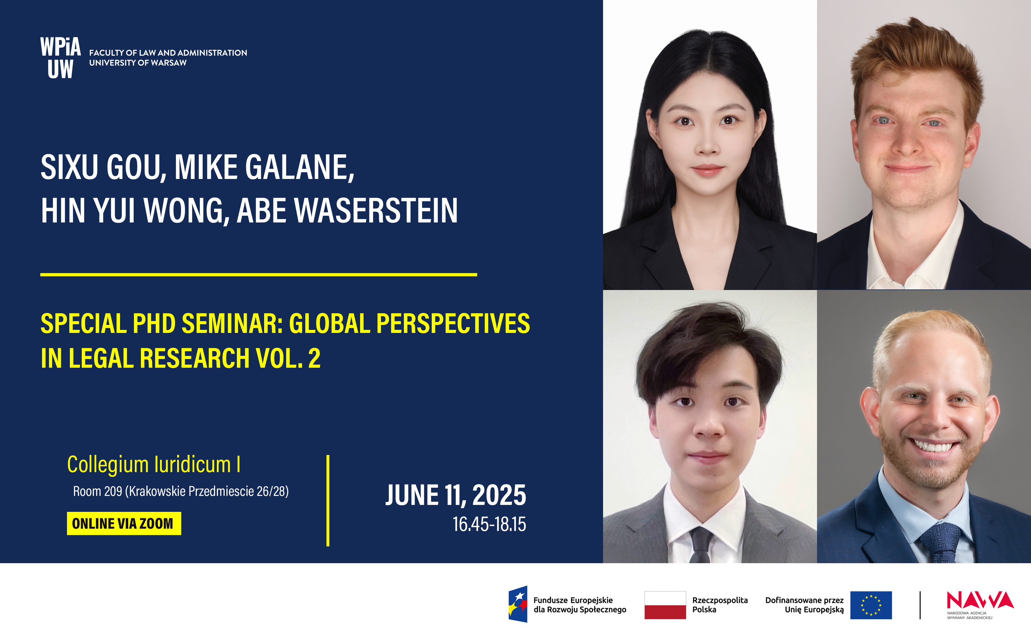 Each participant will present their ongoing research in a 15-minute session, followed by a Q&A. The seminar offers a valuable opportunity to foster dialogue across legal systems and academic traditions and build meaningful academic connections.