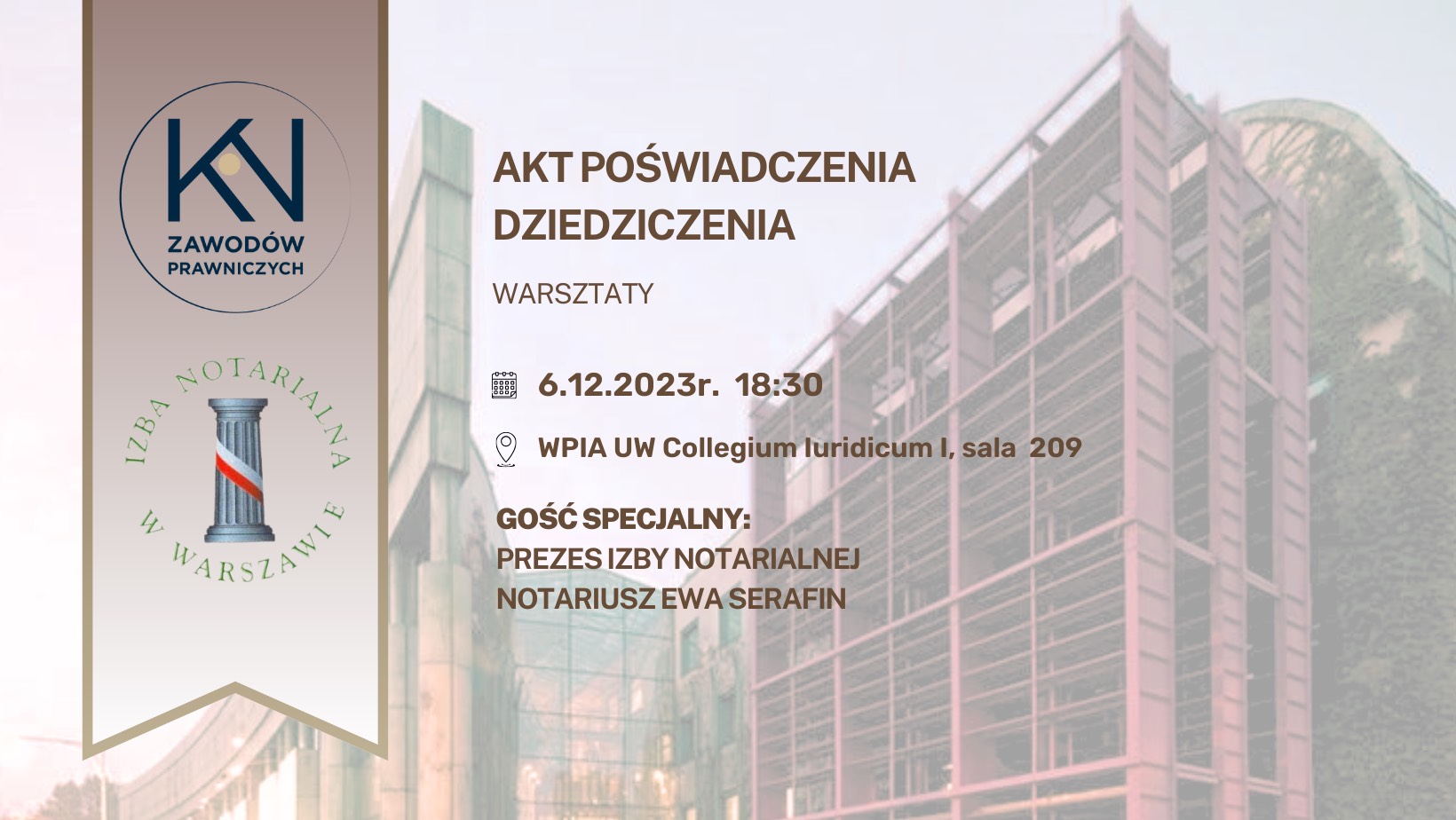 Koło Naukowe Zawodów Prawniczych zaprasza studentów wszystkich lat studiów na wydarzenie organizowane we współpracy z Izbą Notarialną