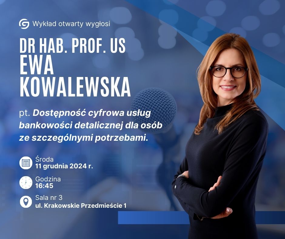 Wykład otwarty dr hab. prof. US Ewy Kowalewskiej pt. "Dostępność cyfrowa usług bankowości detalicznej dla osób ze szczególnymi potrzebami"